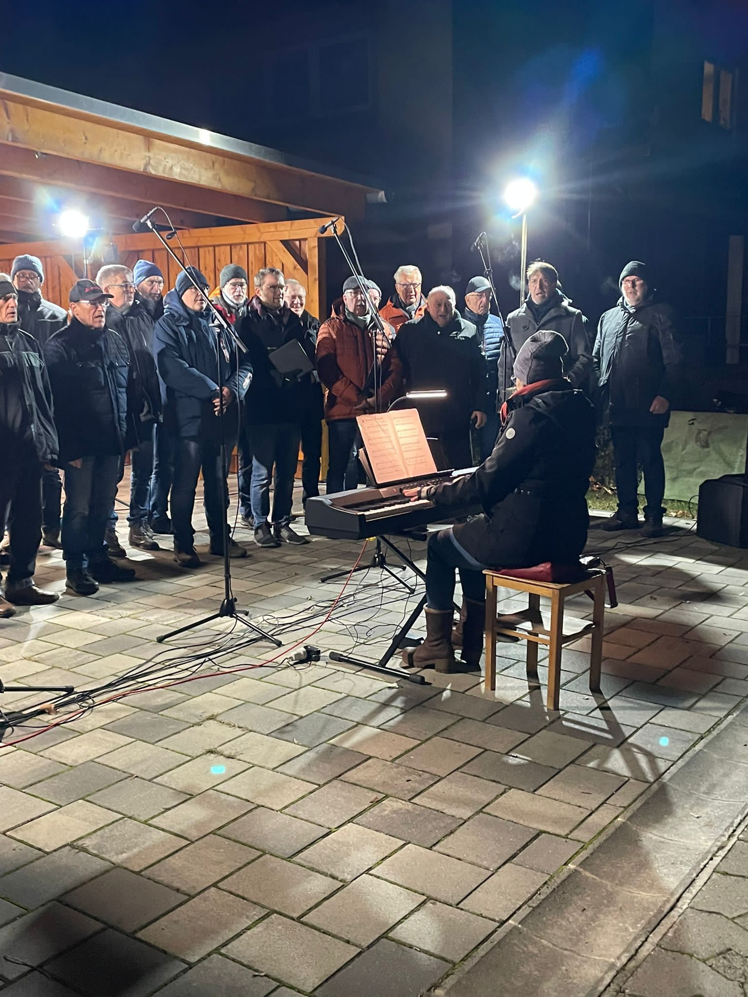 Der MGV Seershausen hatte zum Singen unter dem Weihnachtsbaum Ecke Peiner Straße/Ohofer Weg geladen und knapp 100 zuhörende Bürger aus Seershausen und Umgebung weilten der Veranstaltung. Neben Feuertonnen sowie heißen und kalten Getränken gab es auch kleine Leckereien auf Spendenbasis. Der MGV präsentierte sich mit samt neuer Tontechnikanlage den Zuschauenden und eröffnete das Minikonzert mit „Bald ist wieder Weihnachtszeit“.