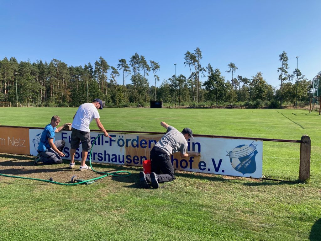 Fußball-Förderverein – Mitglieder lassen Werbebanden im neuen Glanz erstrahlen
