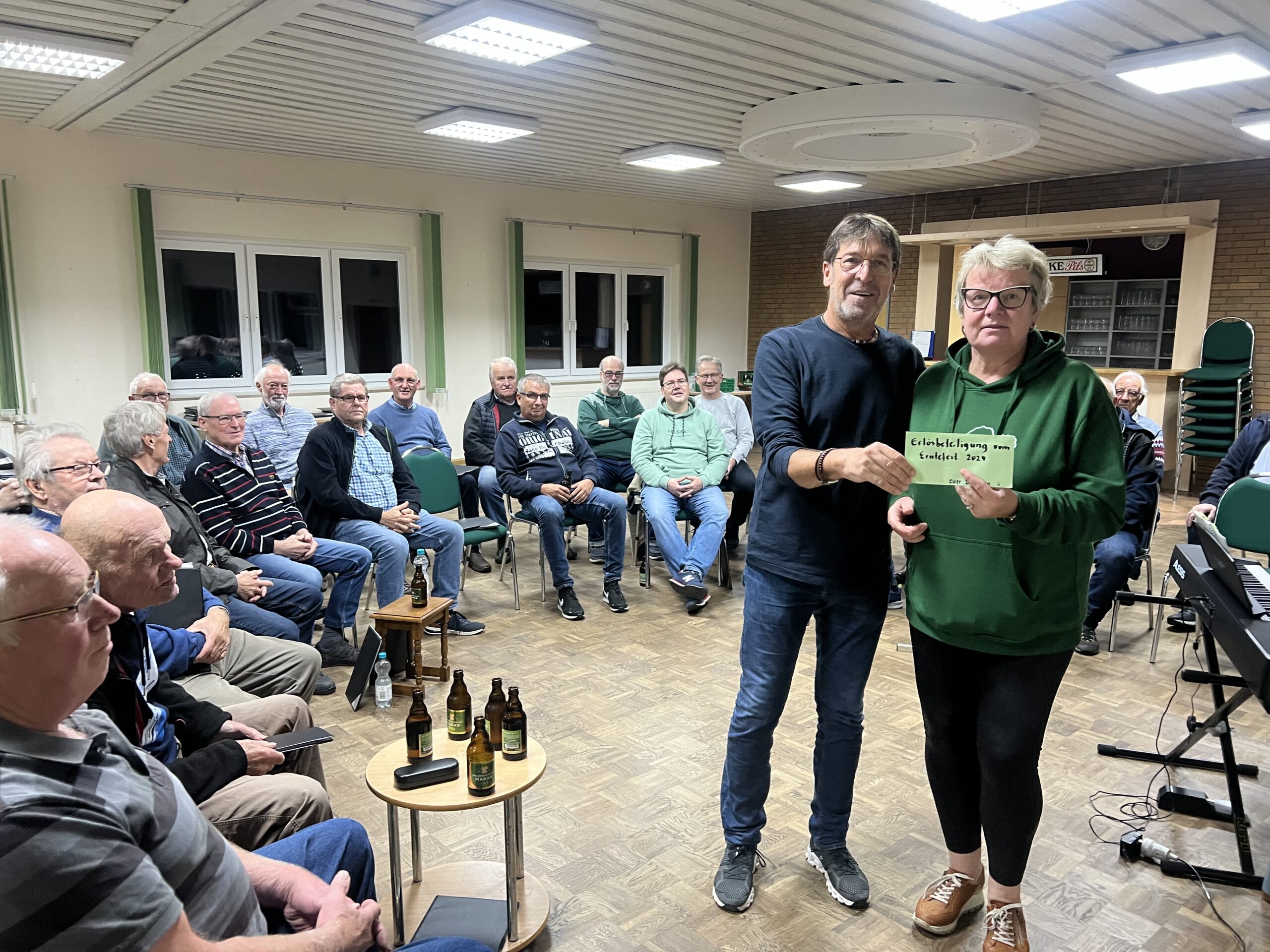Auch der Durst konnte mit einigen Kaltgetränken gestillt werden. Die daraus entstandenen Erlöse wurden nun vom Dorfverein Seershausen an den Posaunenchor und dem Männergesangverein übergeben. Beide Vereine waren sichtlich erstaunt und freuten sich über die Spende von 150 € vom Dorfverein.