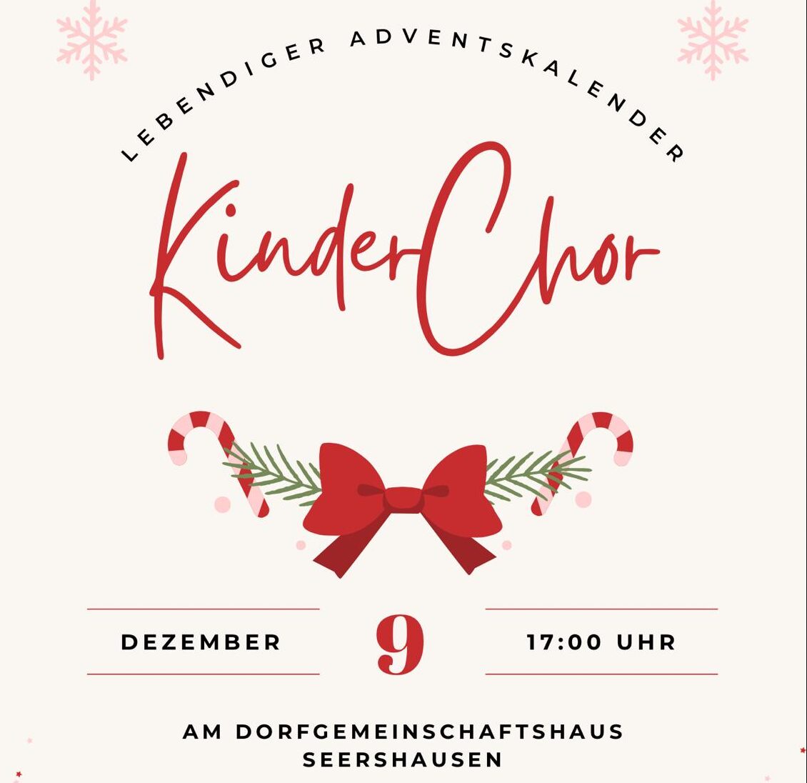 Der MGV Seershausen lädt zum Adventskonzert ein Auch in diesem Jahr veranstaltet der Männer-Gesang-Verein Seershausen von 1888 e.V. wieder sein traditionelles Adventskonzert und lädt dazu alle Interessierten am Sonntag, dem 7. Dezember 2025, um 17 Uhr in die St.-Marien-Kirche in Päse herzlich ein. Neben dem MGV Seershausen wirken auch der „Gymi-Leif-Chor“ des Sibylla-Merian-Gymnasiums Meinersen sowie...