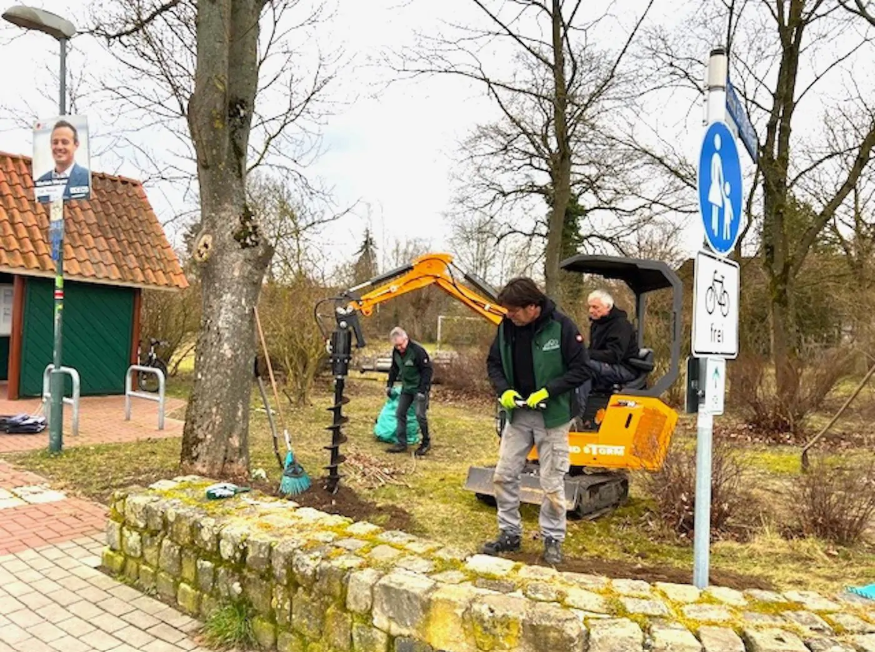 Mitten im Dorf, an der Bushaltestelle am Bolzplatz wurden zwei Löcher in die Erde gebohrt und ein günstig erstandener Schaukasten einbetoniert.