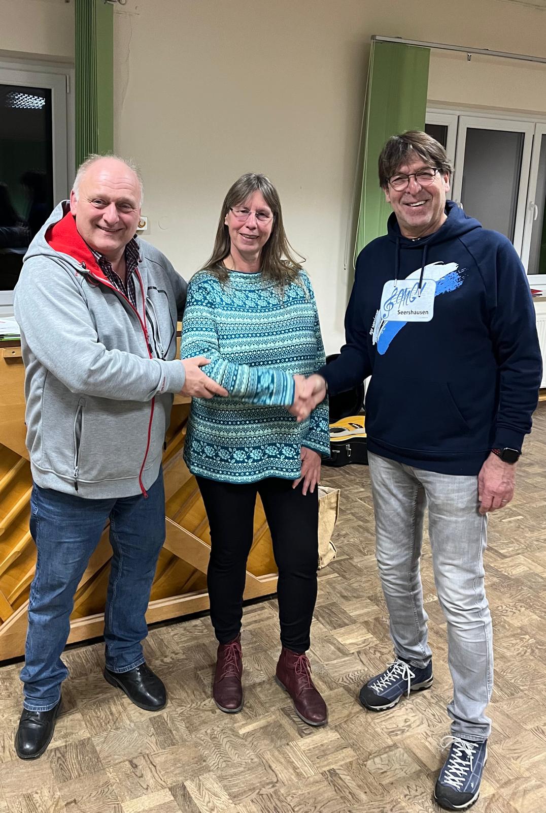 Auf Anatoll folgte Claudia von der Brelje. Die gelernte Sozialarbeiterin und verheiratete Mutter von 3 erwachsenen Kindern übernahm das Amt der Chorleiterin am 01.01.2024. Claudia ist seit 2014 selbstständig in der Lernförderung (hauptsächlich mit jugendlichen die einen Migrationshintergrund haben). Von 2021 bis 2023 absolviert sie die Ausbildung zur Chorleiterin an der Landesmusikakademie Wolfenbüttel. Seit 2023 die Fortbildung B-Kurs Rock/Pop/Jazzchorleitung an der Bundesakademie. Mit dem MGV Seershausen hat sie auch noch die Leitung der gemischten Chöre Stellwerk e.V. Gifhorn und „Taktvoll“